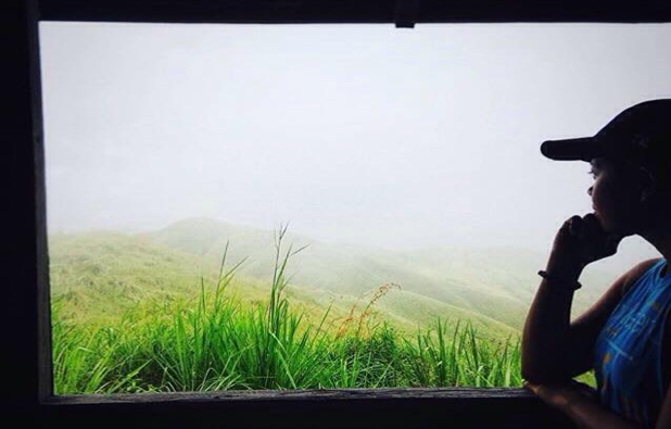 I took a beautiful photo of her in a perfect spot where she was surrounded with a sea of green. After a few shots and sightseeing we rested for a while at the DENR shack until, suddenly, a quick storm caught us and covered everything in mist. We were quite worried since it was only the two of us up there but we tried to remain calm and take refuge inside.