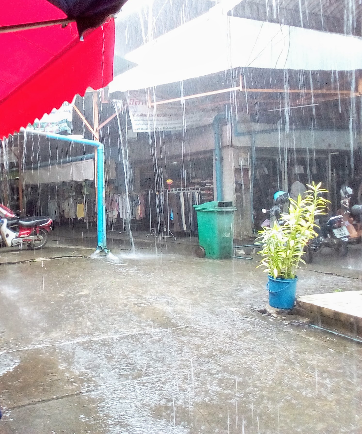 Yes – even in farang-packed Chiang Mai it’s easy to end up in interesting places and be the only Westerner around. It happened to me on the way back from the train station, which is quite a distance from the historical downtown core. I’d biked there in order to buy my overnight sleeper train ticket to Bangkok, and as I was returning on the busy Charoeng Muang Rd, I was surprised by a true tropical downpour. Fortunately, I was able to seek refuge in a nearby market (which, on later investigation, turned out to be San Pa Khoi).