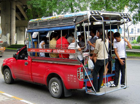Finally, songthaew was put into gear and we started rolling. The Thais smiled and broke into animated chatting, and the two of us farang cheered, happy to be on the move and to have the slightest breeze cooling us off.