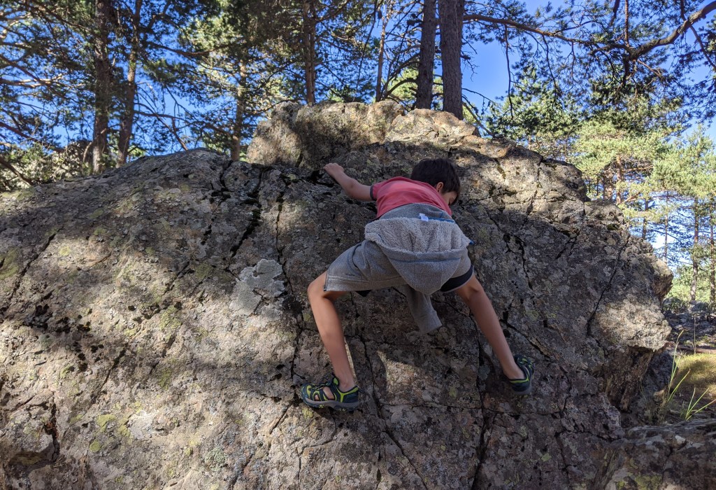 Mi camping weekend with the kids was inspired by previous trips to Sierra Espuña, Murcia and Cañamares, Cuenca. We were after beauty and action but, perhaps more than ever after the taxing months of quarantine and beyond, were longing for that feeling of freedom that you get when you camp. No major concerns other than staying cool during the day, warm at night, eating well, climbing boulders and catching sunset views if possible. There was also some easy walking to a nearby summit, which we enjoyed on our last evening at the campsite.
