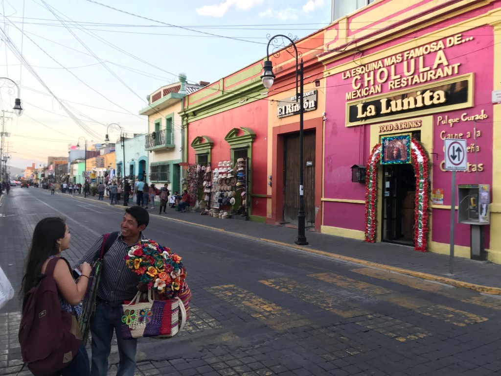 Cholula was packed with tourists, mainly Mexicans. As we looked for parking, we notice that it had more than a fair share of trendy bars and restaurants in its quaint, renovated streets.