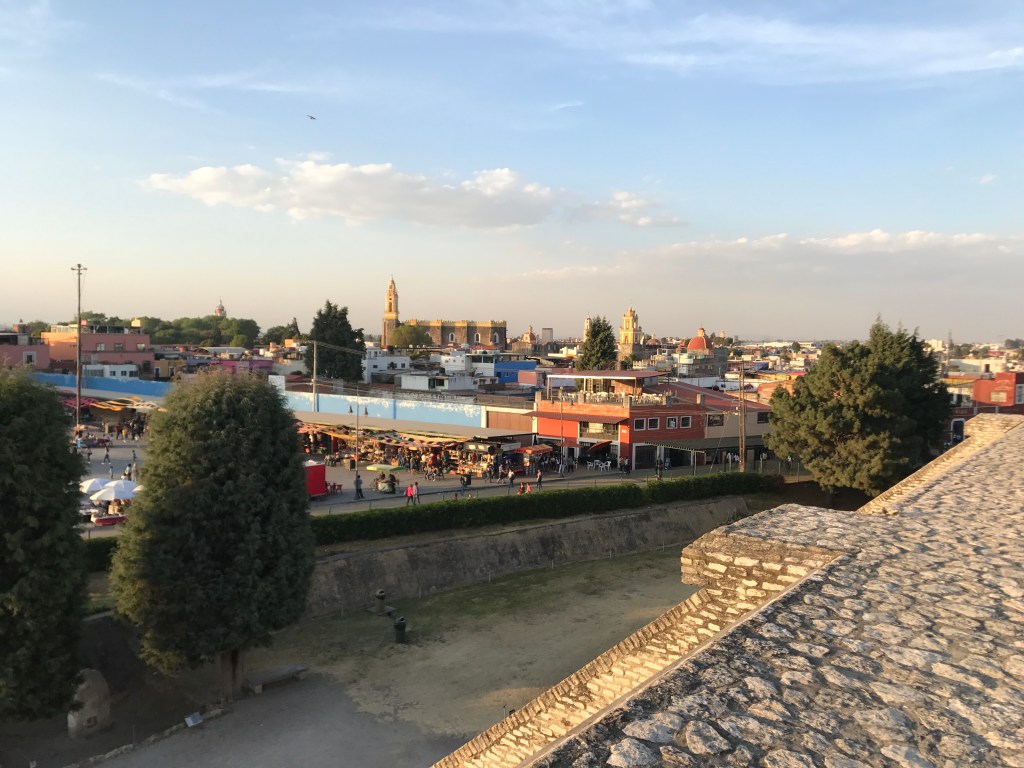 After a rather dull, dusty day on the road with stopovers at Tlaxcala and Huejotzingo, we finally arrived in Cholula, with barely enough time to visit the remains of the Great Pyramid.