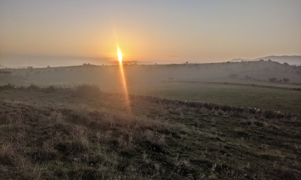 I saw no one during the hour or so it took me to get to Puente de la Marmota. It was getting colder, and I didn’t love the prospect of running back the ups and downs and getting my feet wet again. So I ran the longer route on dirt roads back to Colmenar Viejo. Monotonous, perhaps. But it afforded me a mellow, misty sunset…