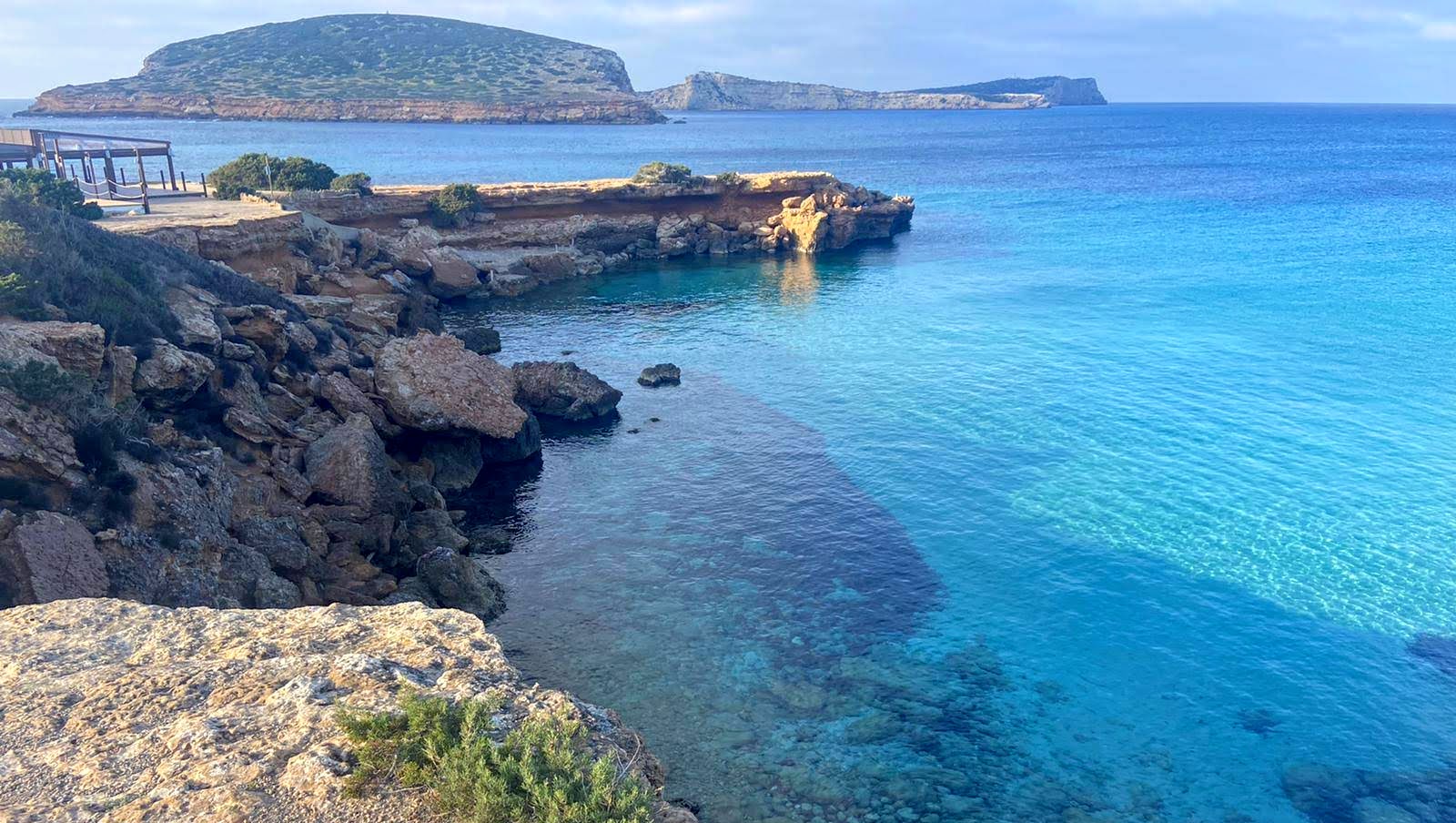 We parked our rental car in Cala d’Hort at around 8.30. As often in Ibiza, there was some morning mist, and the top of Es Vedra island could not be seen. However, the show of lights from the traditional fishermen piers in Cala D’Hort were simply spectacular.