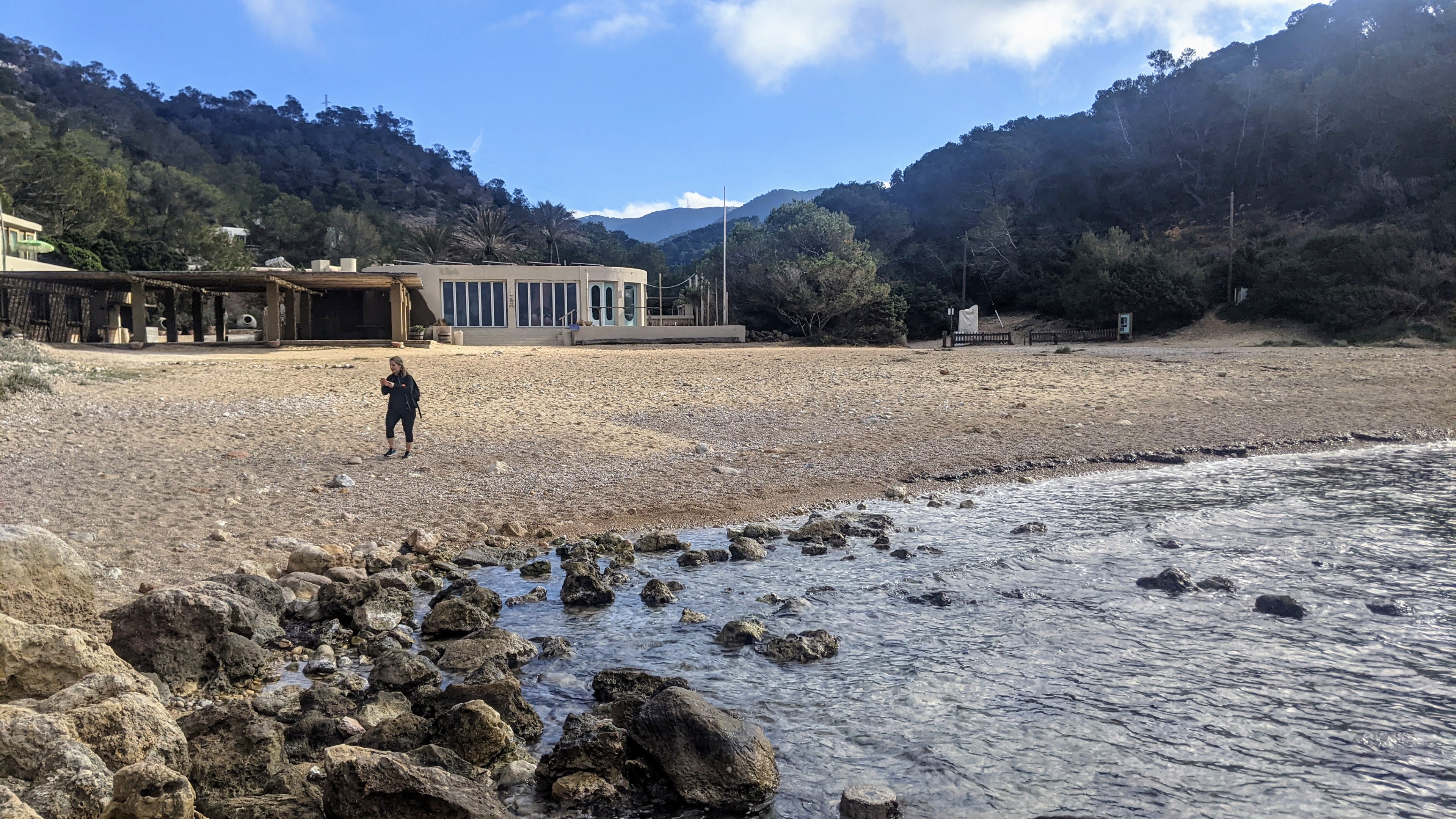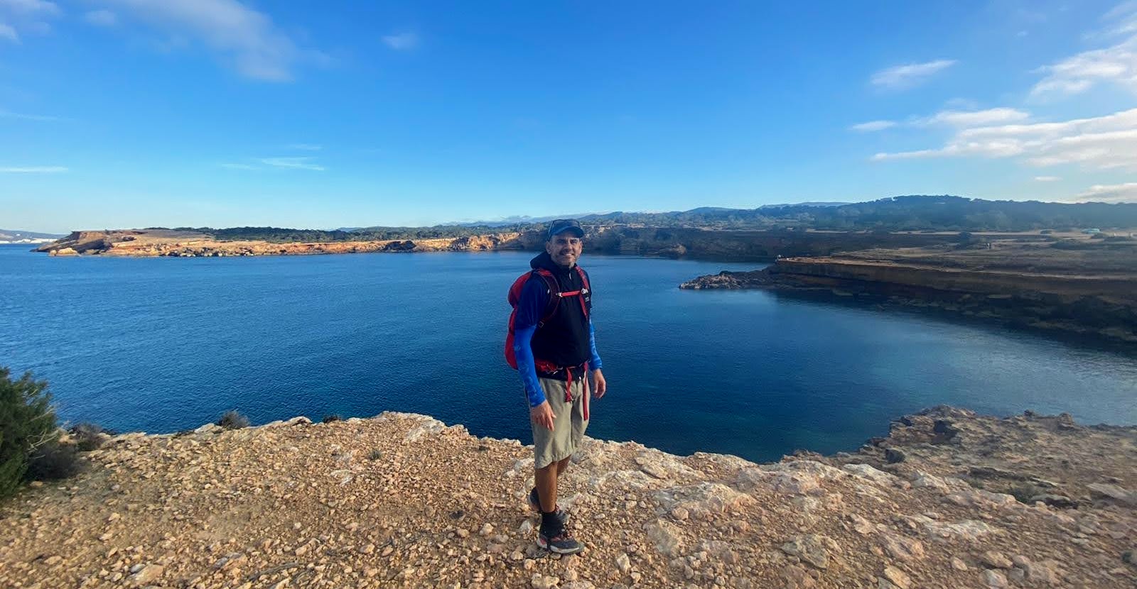 For our first stage on the Ibiza coastline walk, we wanted to combine spectacular scenery with a walk that would not be too challenging. Further, K. was still recovering from a yoga injury in her thigh, and wanted to have different options for bailing if she couldn’t take any more walking.
