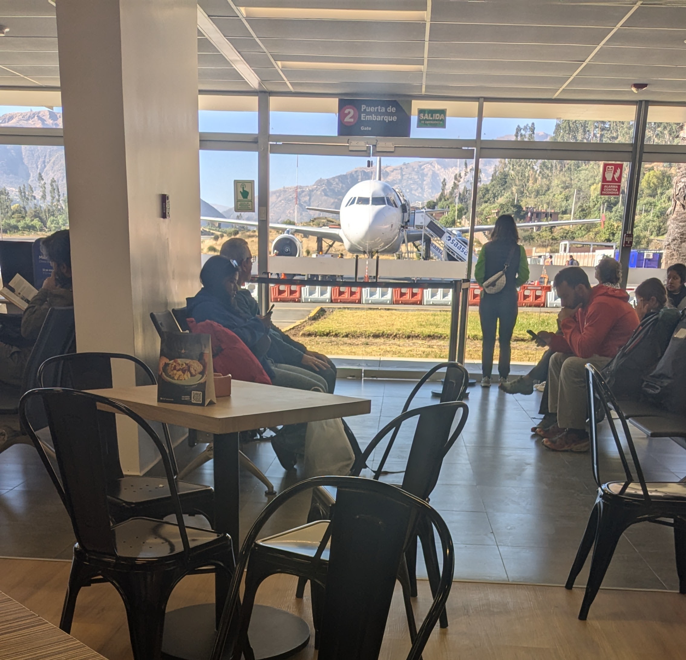 Officially – Huaraz’s is the smallest airport I’ve used. A total of two flights per day, probably the same plane: Latam arriving from Lima, Latam leaving for Lima. It felt almost cozy, and the views of the nevados were awesome.